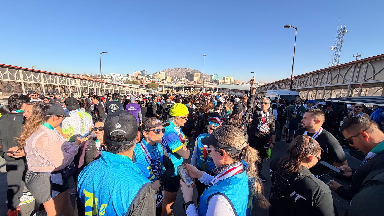 At the southern foot of the bridge a Juárez high school orchestra was playing Eye of the Tiger while the Mexican customs officers cheered and goaded the runners. Ya mero! one of them yelled. What’s he talking about? There’s four miles to go.