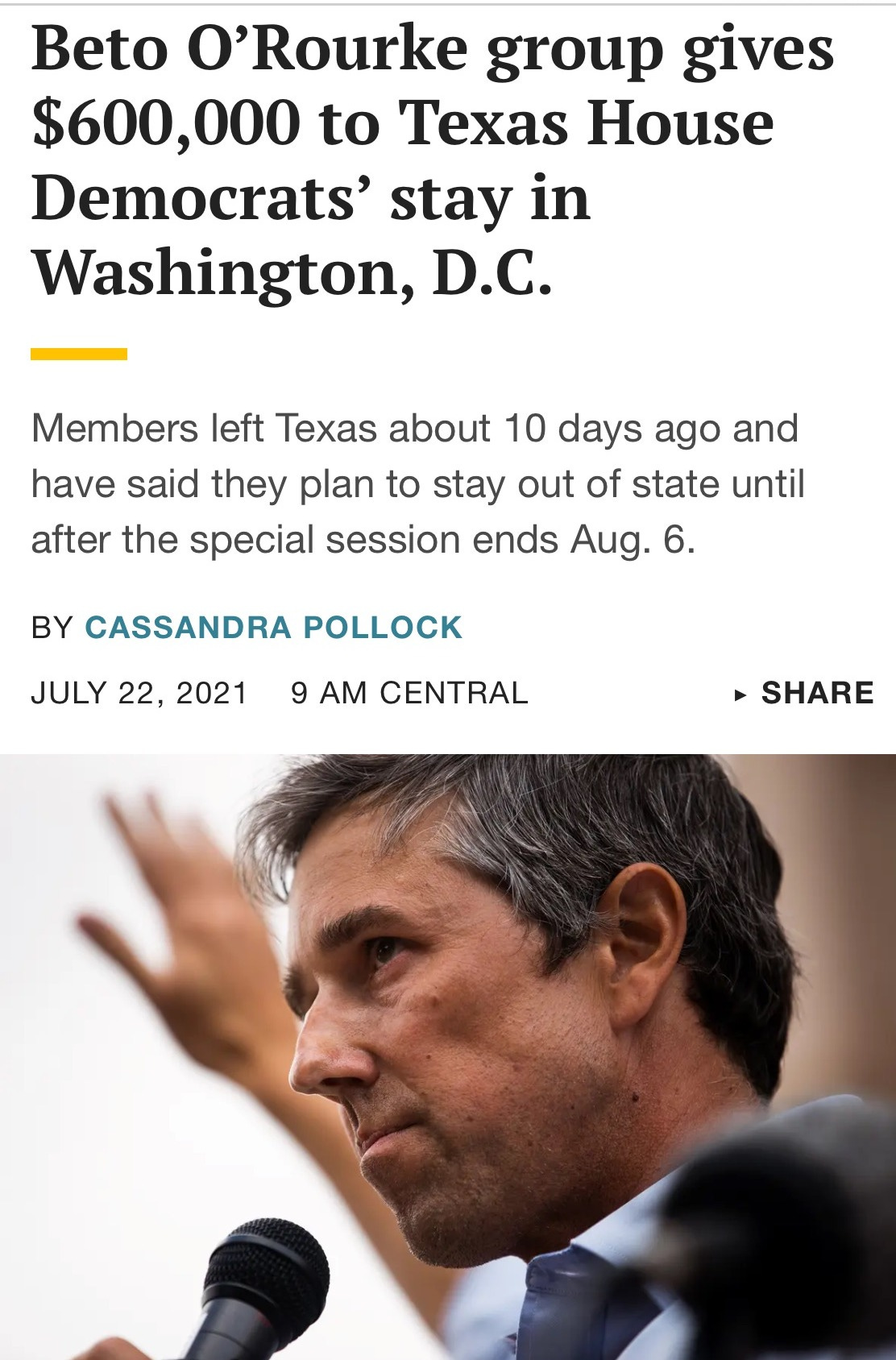 Beto, as a fellow Texan, I appreciate your voice so much. I have supported everything you’ve done and will continue to do so. I always say, Beto has a heart for Texans. I believe that, I believe you have a good heart for Texans. I keep you and your family in my thoughts and I hold hope everyday that more leaders like you emerge. You may not hold an office but you show up everytime Texas needs you, thank you.